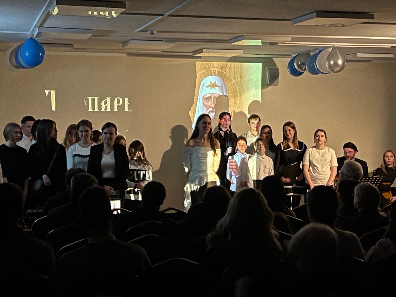 Рассказ о жизни патриарха Тихона сопровождался исключительно живой музыкой: аккомпанемент гитары и балалайки украшал текстовую часть и творческие номера. Народные песни, фланкировка казачьими шашками, известные музыкальные композиции, духовные песнопения, житие с мультимедийным сопровождением — вечер получился насыщенным.