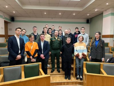 24 ноября настоятель храма св. Георгия Победоносца Патриаршего подворья в Зеленограде иерей Михаил Ильин провёл лекцию «Москва — город святого Георгия», перед группой студентов НИУ МИЭТ. В своём рассказе священник напомнил о становлении герба нашей столицы и Отечества, на котором запечатлён святой Георгий Победоносец. О времени, в которое жил святой, о его подвигах и страданиях за Христа. О том, как слава великомученика за веру распространялась в мире и приводила к Господу все новых и новых последователей. О деяниях Российских правителей, строивших храмы в честь святого Георгия и вводивших воинские награды за личное мужество в его память. Одной из страниц Московской истории, связанной с именем великомученика Георгия стало основание Университета НИУ МИЭТ в Зеленограде в день его памяти 9 декабря, известного также в народе, как Юрьев день. В этом году МИЭТу исполняется 60 лет.
